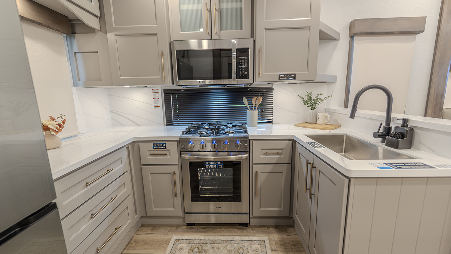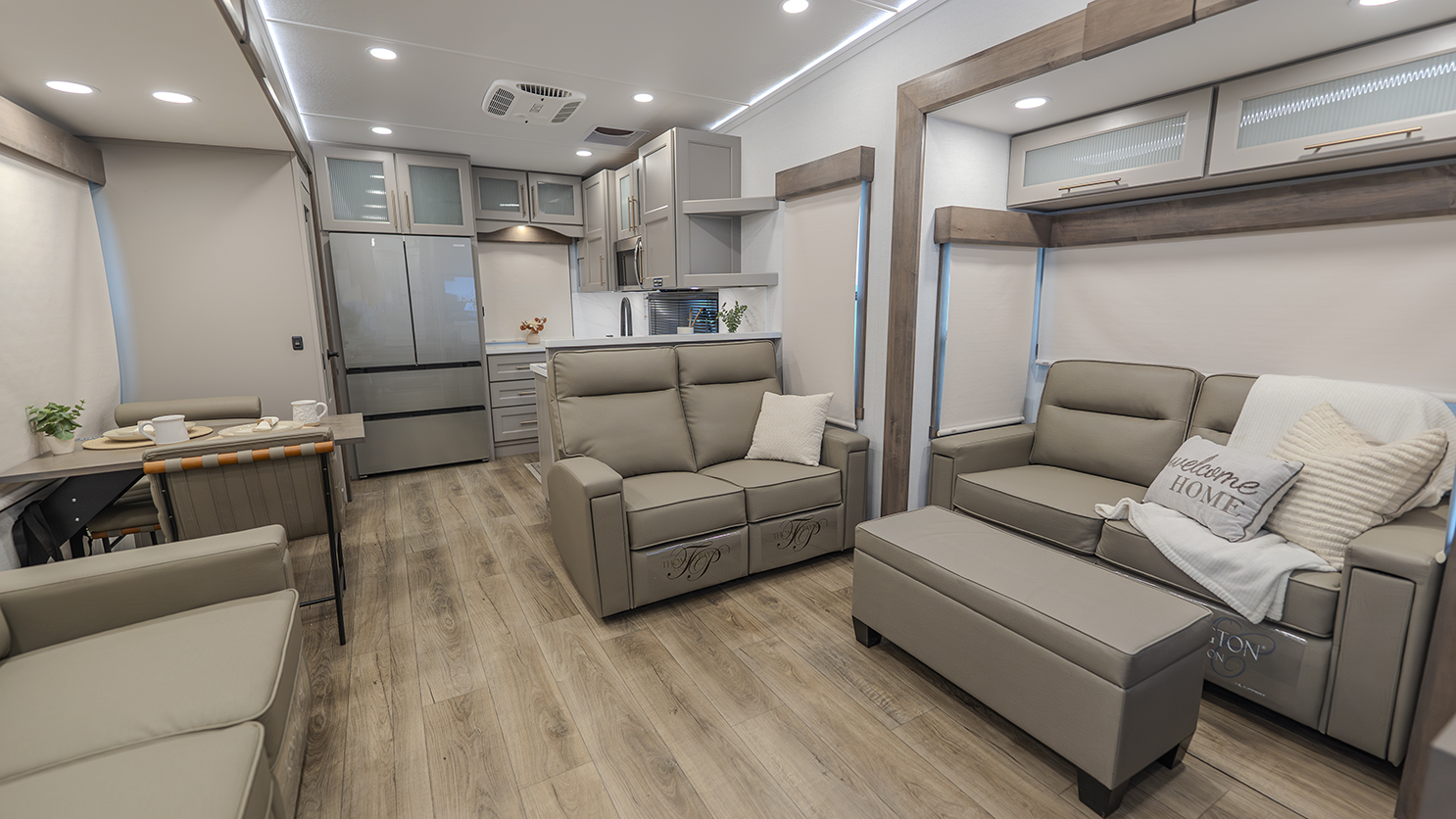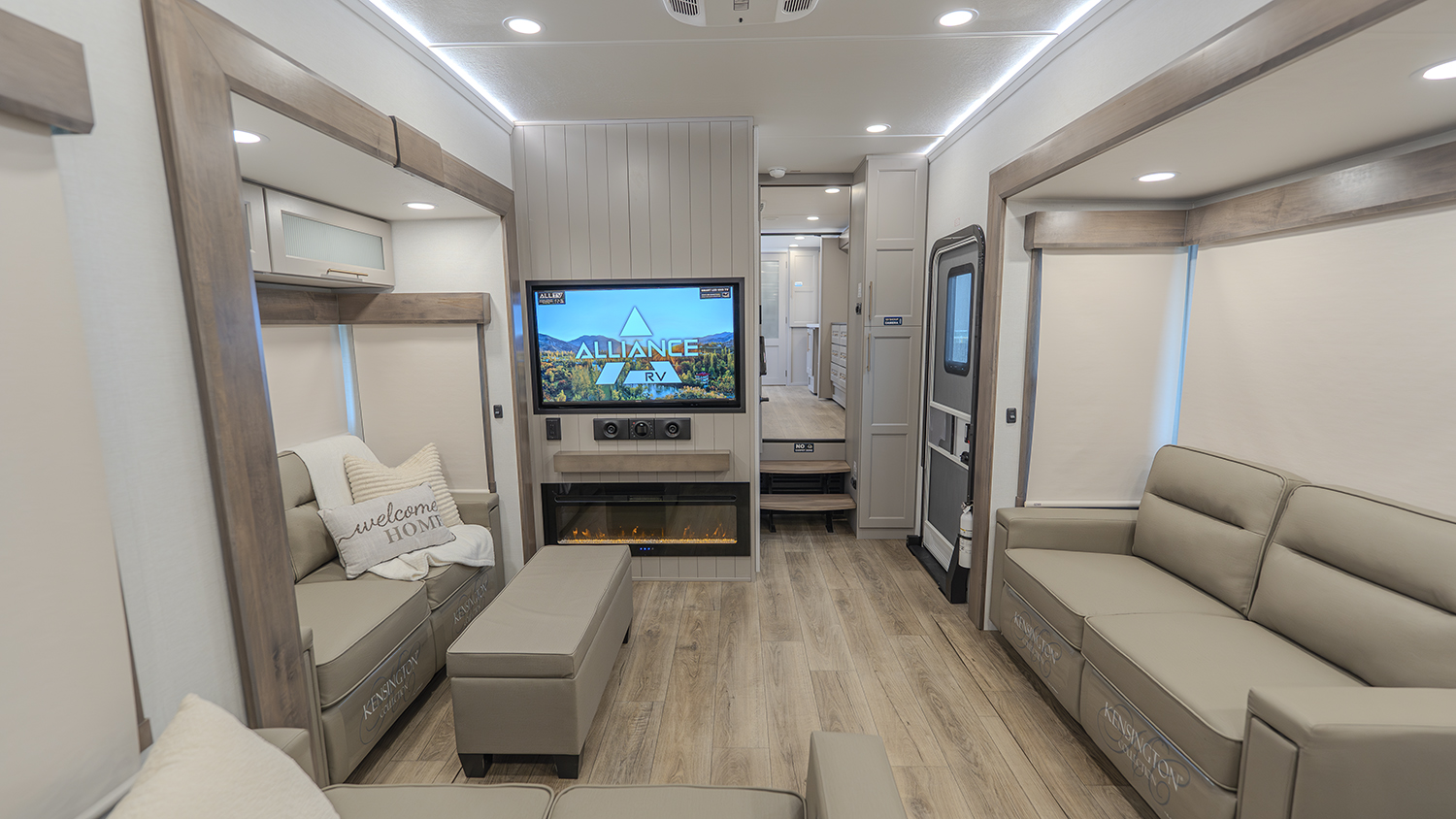 The Alliance RV Paradigm 382RK is the perfect blend of luxury, functionality, and comfort, designed for those who want to experience RV living at its finest. The rear kitchen is a chef’s dream, offering generous counter space, a 19 cu. ft. 12V residential refrigerator, and a pantry for all your snack and ingredient storage needs. With all the space and high-end appliances, meal prep will feel just like home.