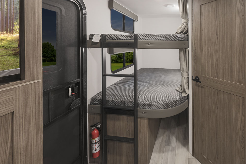 • 46" x 75" Bunk Beds in the rear corner for extra sleeping space