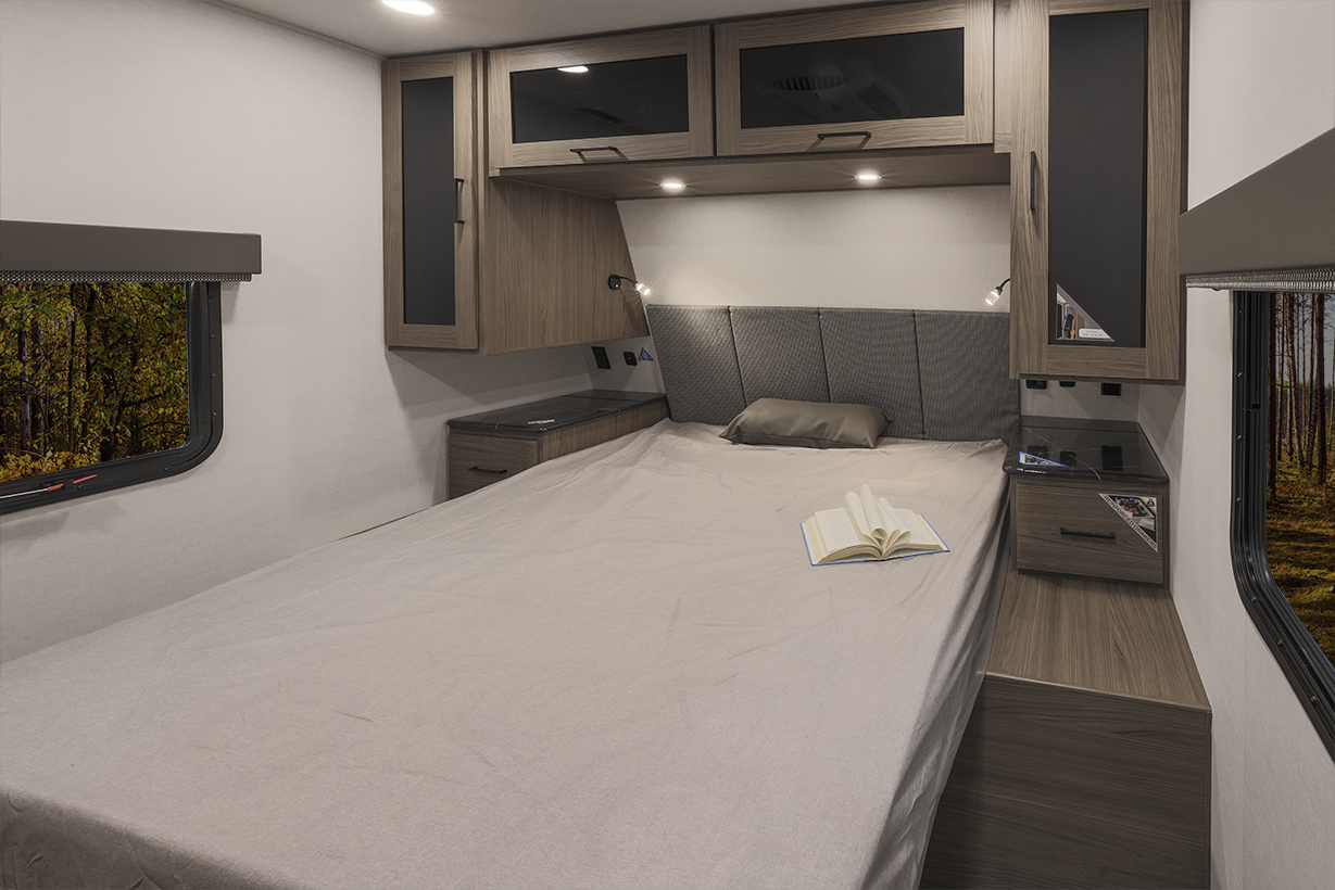The Alliance RV Delta 321BH travel trailer is designed for families and groups of up to eight people, offering comfort and convenience. It includes a rear private bunkhouse with slide-outs, creating a spacious and comfortable area. The double slides expand the living space, featuring a U-shaped kitchen with counter space and storage. The full bathroom includes a shower and amenities for convenience. A private front bedroom. Outdoor features include an included griddle and folding camping table. The trailer is built for durability with a walk-on roof and enclosed underbelly for all-season protection. Spacious storage is available with 62 cu. ft. of pass-through storage. Interior comforts include vinyl flooring, atrium windows for natural light, Bluetooth speaker, and USB charging ports throughout. The trailer offers modern conveniences and plenty of space for outdoor adventures.